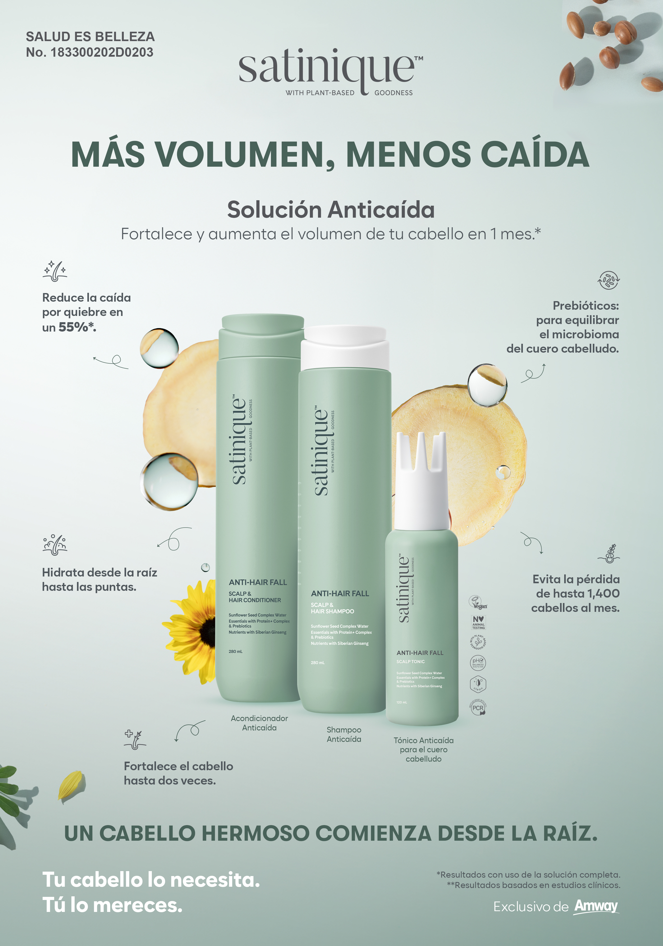 *Por causas no asociadas a enfermedades o terapéuticas. ** Resultados de estudios clinicos al utilizar el shampoo y acondicionador del sistema anticaída. *** Resultados basados en estudios de percepción del consumidor